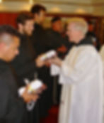 Friar Rich receives his 1st cord from Friar James. He will not receive a knotted cord until his Profession of Simple Vows.
