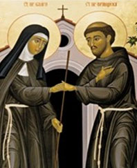 16, 1194 in a noble home in Assisi, Italy. She was the first female follower of Saint Francis and lived in the church of San Damiano that Saint Francis had renovated for the sisters. Saint Clare following Francis' mission founded the Poor Clare Sisters, whom devoted their life to prayer and simple labor in a monastery.